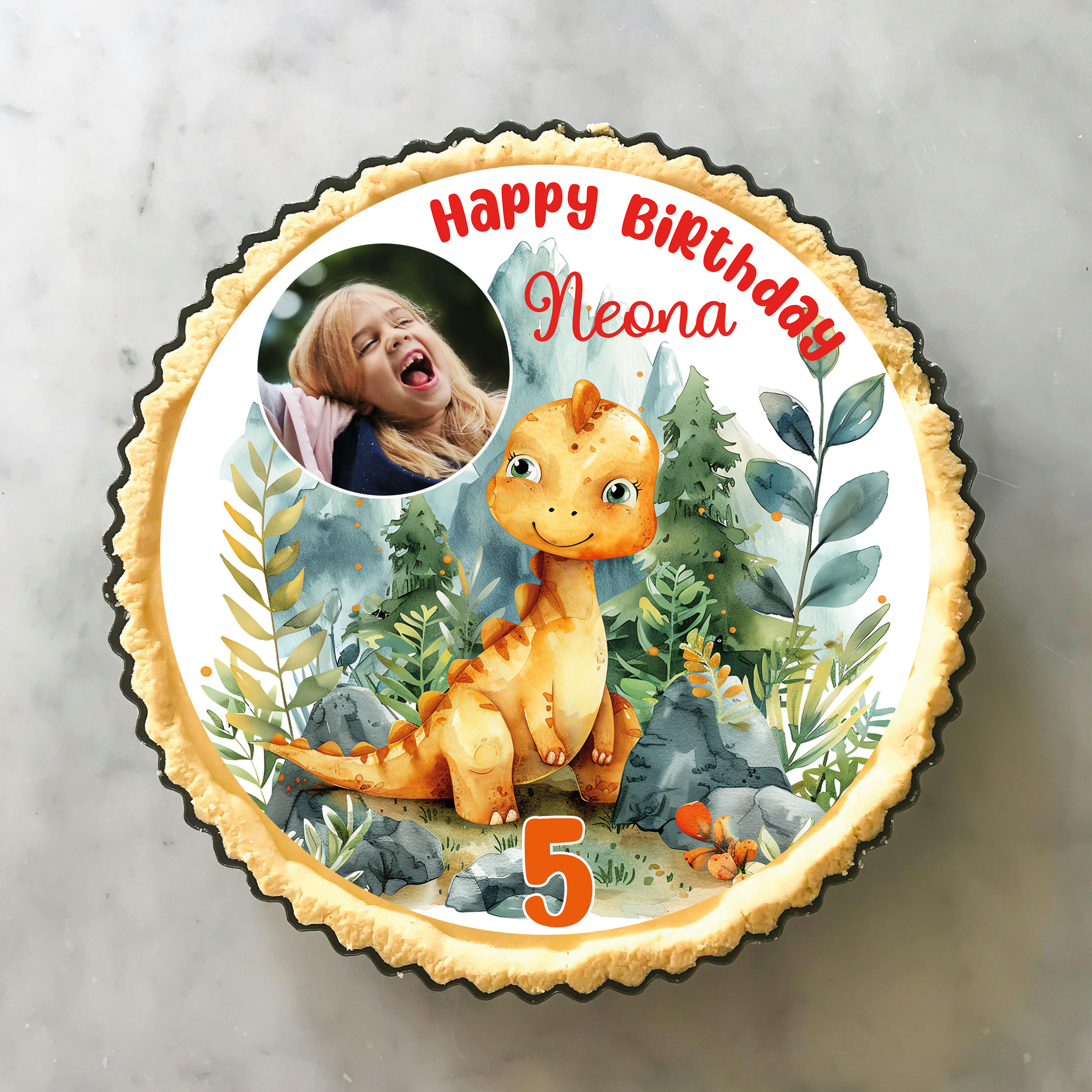 - Individuell gestaltbar: Das Besondere an diesem Aufleger ist, dass er ganz persönlich gestaltet werden kann. Lade einfach dein Lieblingsfoto hoch und schon wird der kleine Dino zusammen mit dem Geburtstagskind zum absoluten Hingucker auf der Torte.