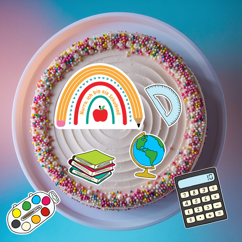 TortenTattoo EINSCHULUNG - SCHULKIND Kuchentattoos (auch Esspapier-Tattoos oder Lebensmitteltattoos) sind essbare Dekorationen, die kreativ auf Kuchen, Cupcakes und anderen Süßspeisen eingesetzt werden können.