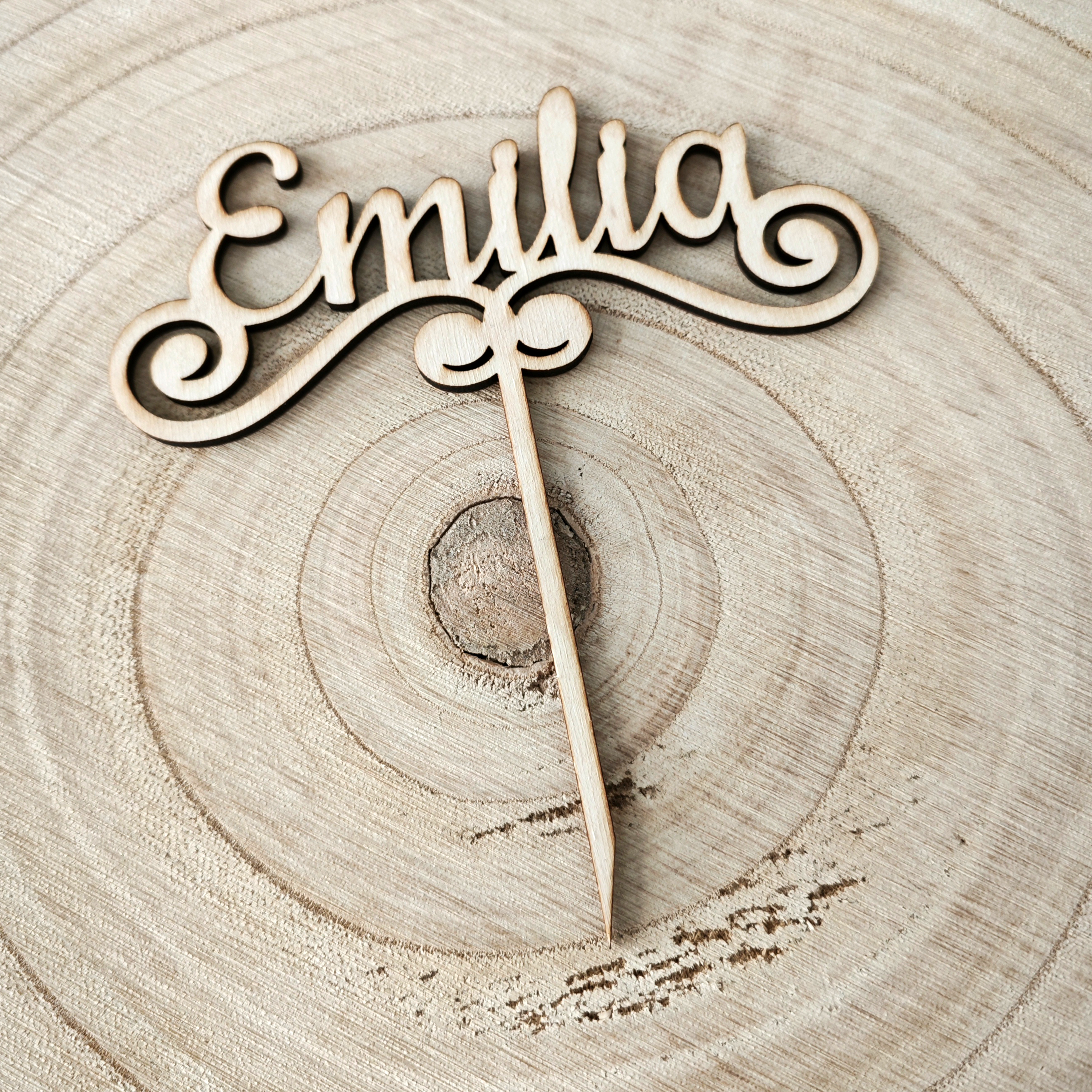 Holzaufsatz mit einem personalisierten Namen ist eine charmante und anpassbare Dekoration für Ihre Torte, Cupcakes oder andere Leckereien.