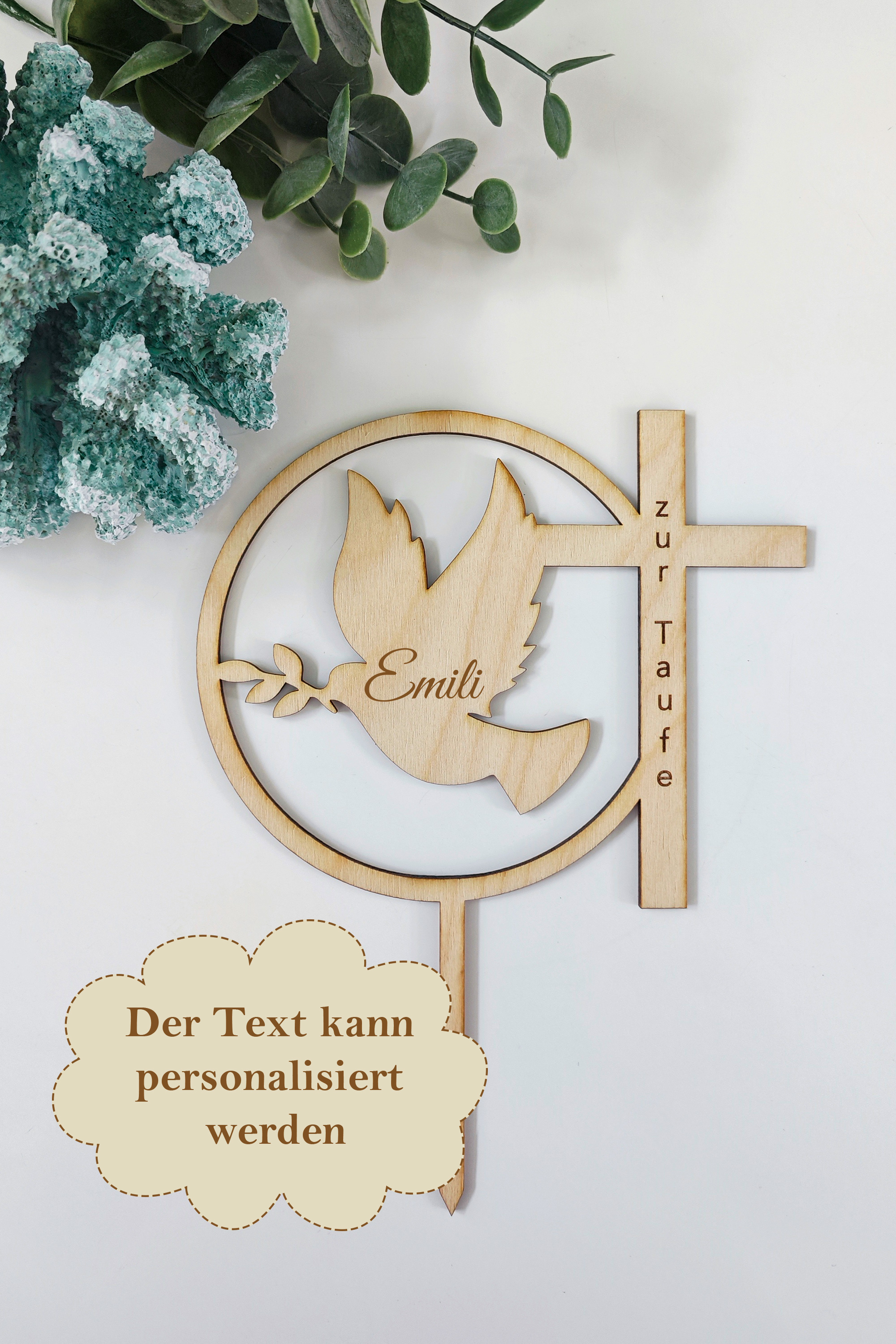 Preview: Holzaufatz TAUBE PERSONALISIERT