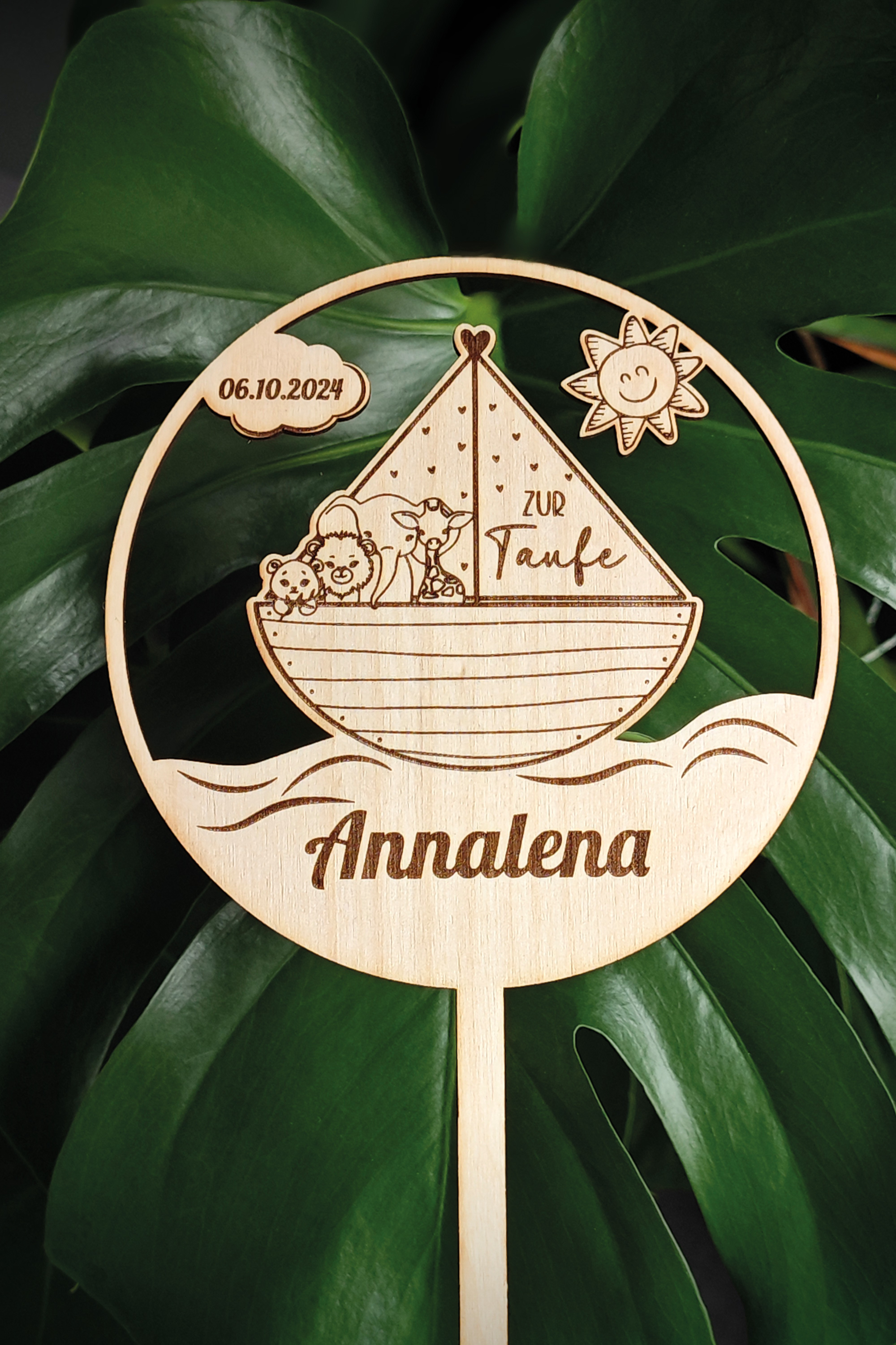 Mobile Preview: Holzaufatz Arche Noah Rund personalisiert