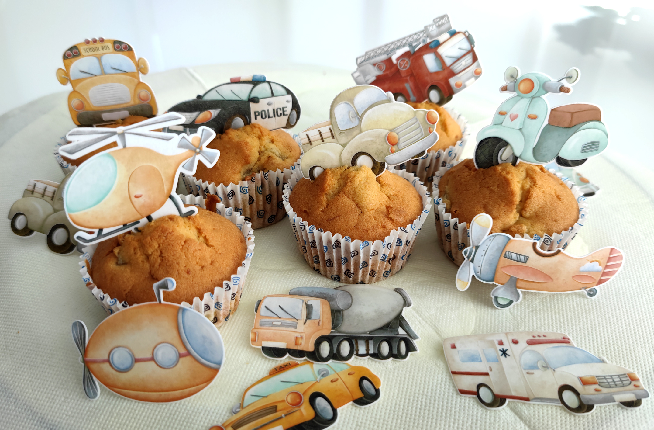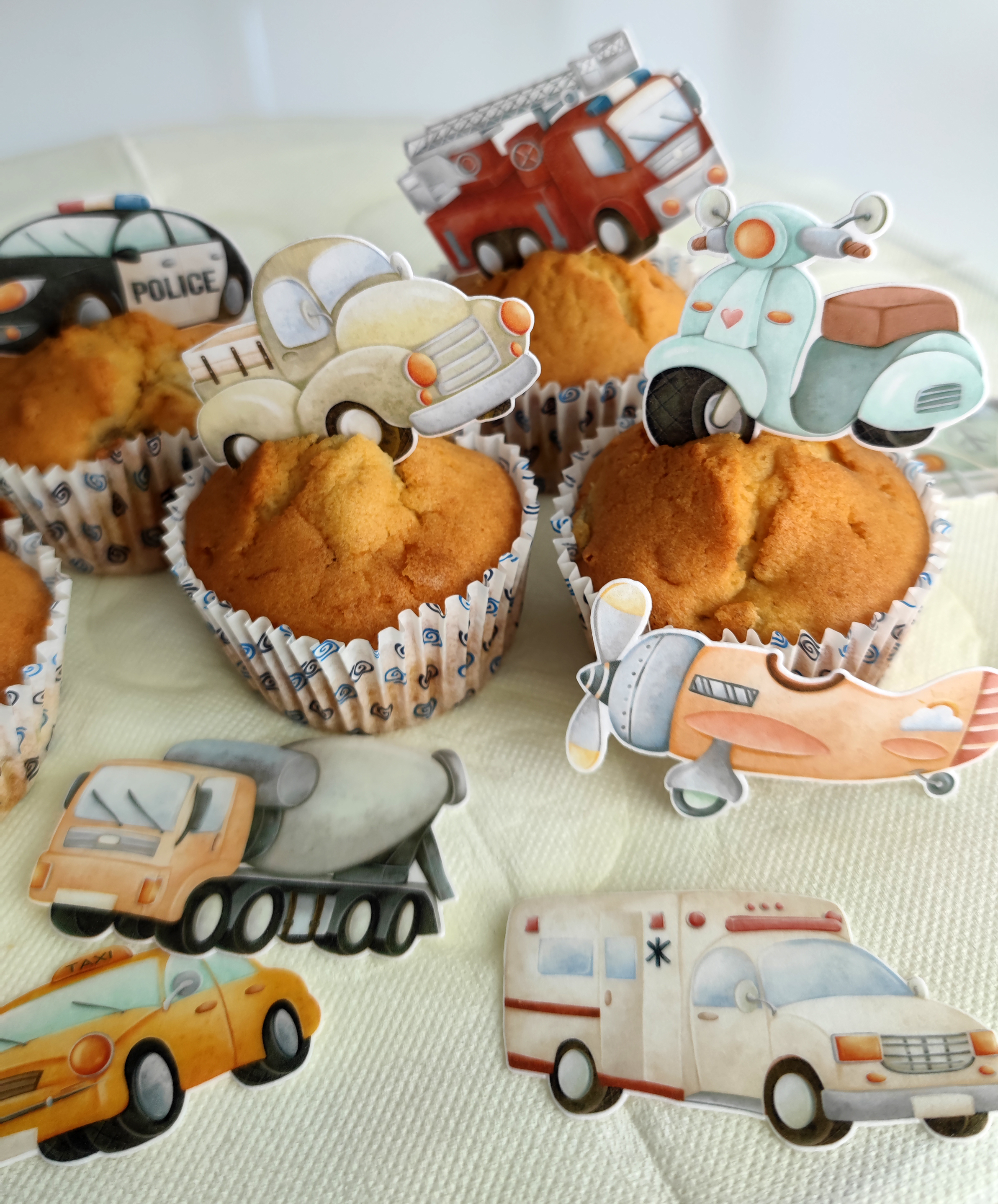 Essbare und bereits geschnittene Fahrzeuge Ihre Cupcakes, Muffins oder andere Backwaren, was gibt es Schöneres, als Kinderaugen leuchten zu sehen.