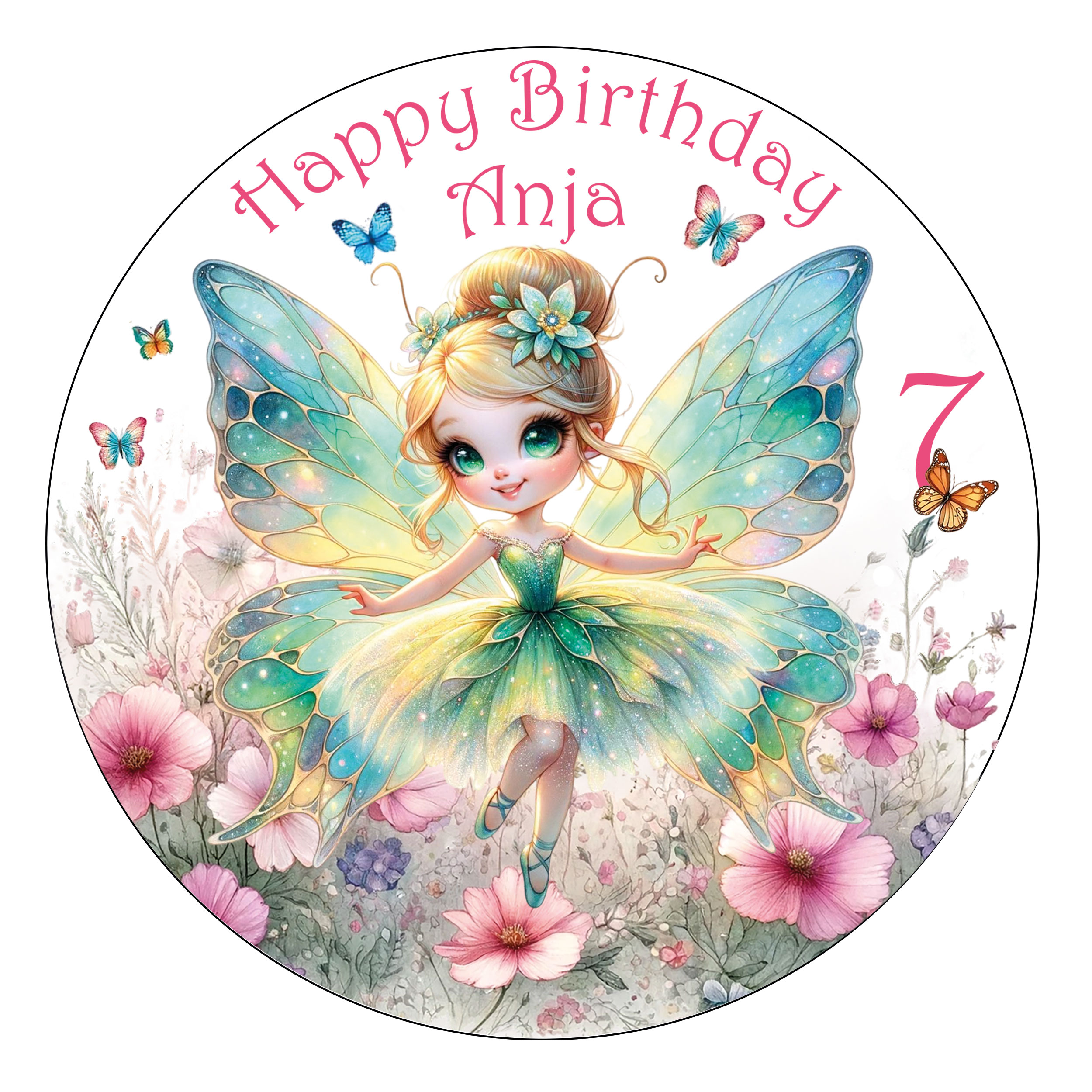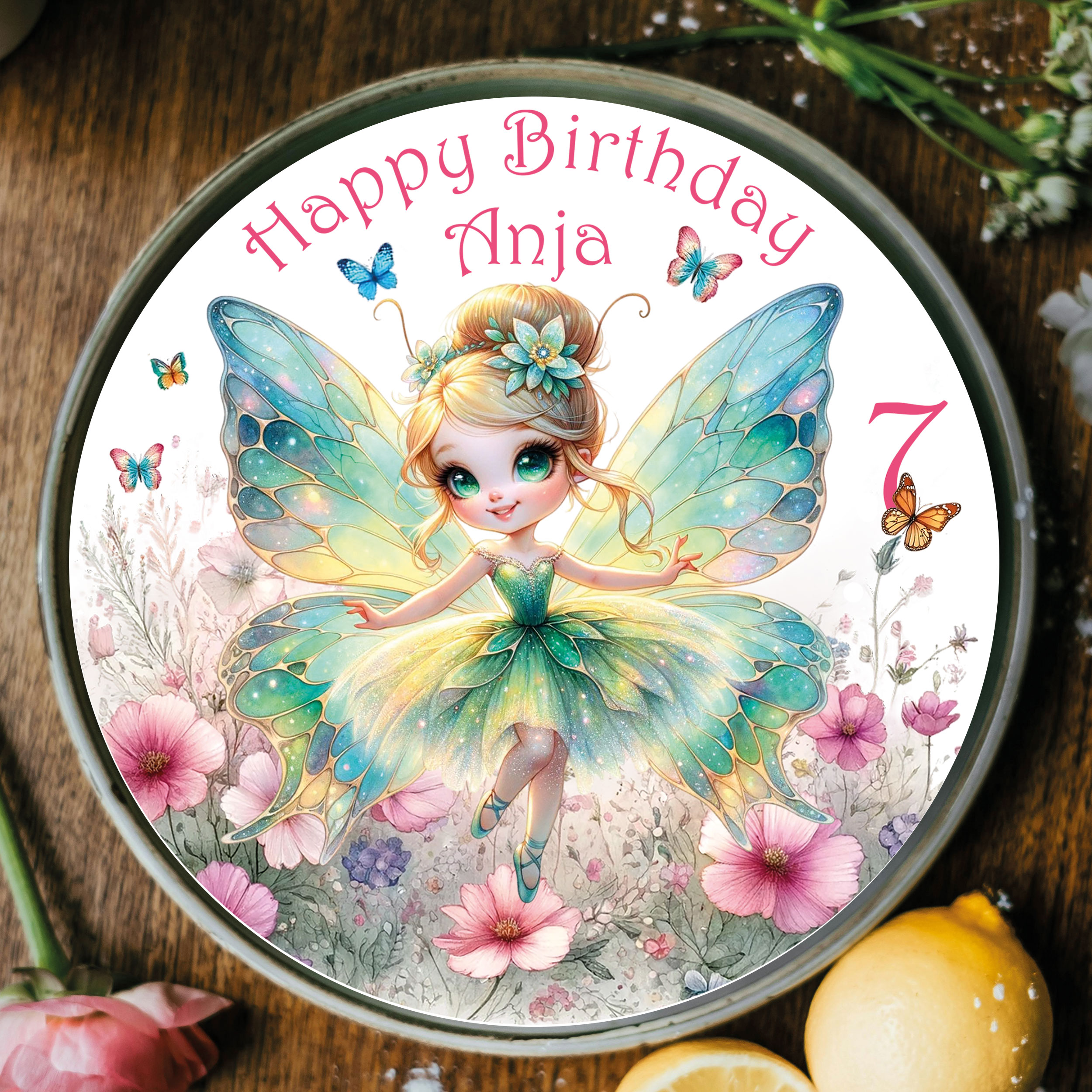 Verleihen Sie Geburtstagskuchen, Cupcakes oder Dessertplatten eine märchenhafte Note mit diesem zauberhaften Fee-Tortenaufleger! Das liebevoll gestaltete Motiv verwandelt jede Süßspeise in ein kleines Kunstwerk und ist der perfekte Blickfang für festliche Anlässe.