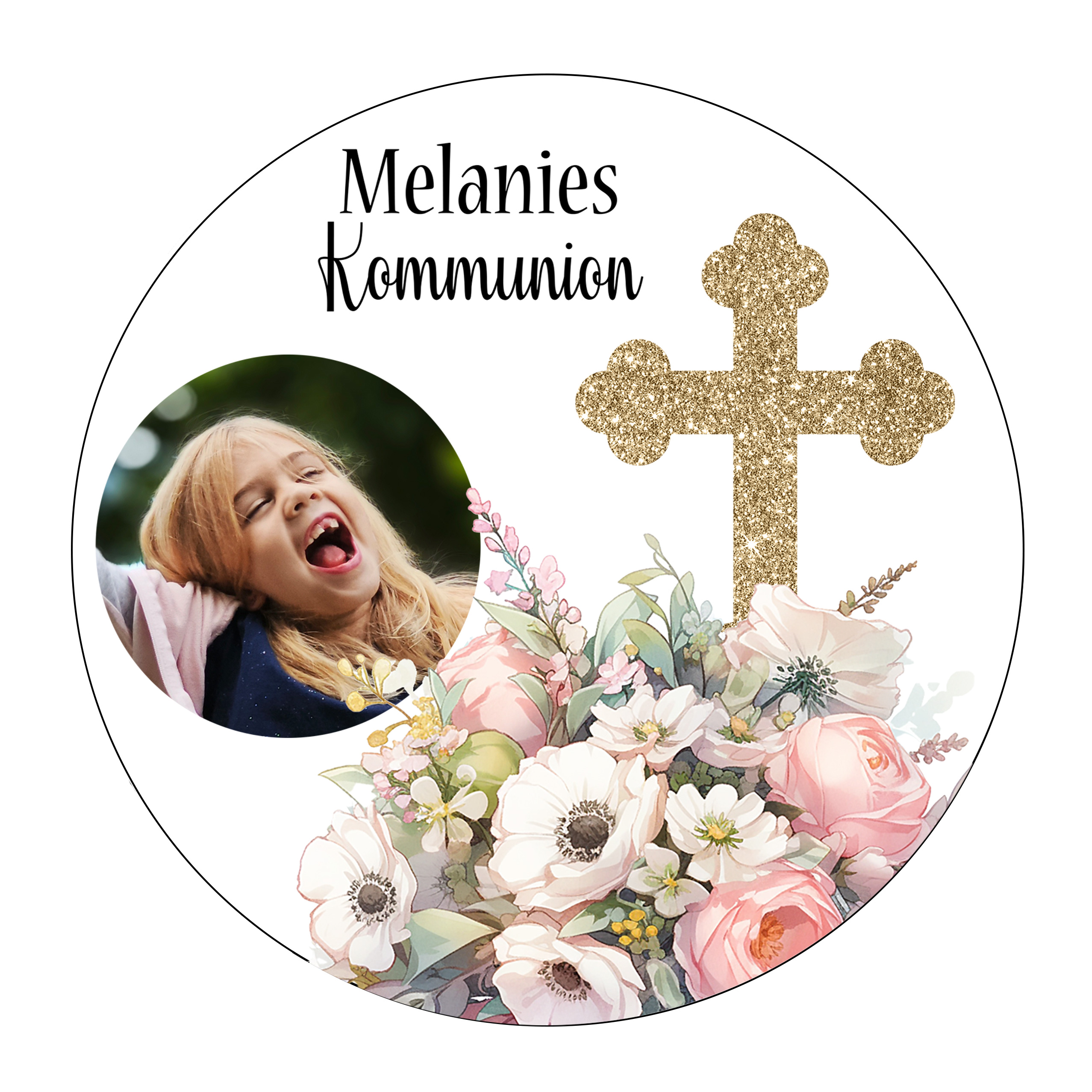 Tortenaufleger Muffin Topper KONFIRAMATION KOMMUNION "KREUZ und BLUMEN"