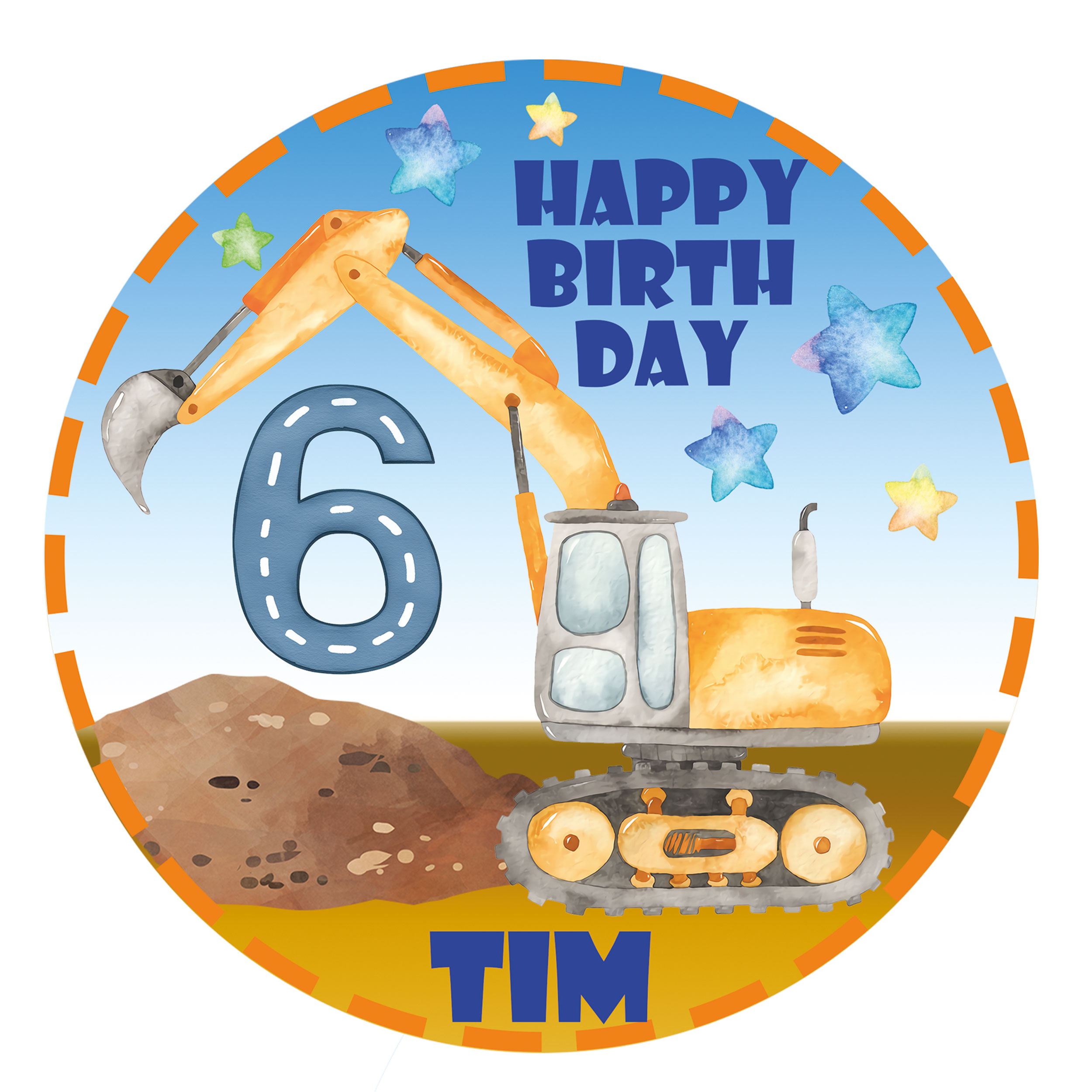 Unser niedlicher Kuchenaufleger ist die perfekte Dekoration für alle kleinen Jungs, die von großen Maschinen träumen! Der detailgetreue Bagger verwandelt jede Torte in eine echte Baustelle, kombiniert mit blauem Himmel und funkelnden Sternen. Personalisiert mit Namen und Alter des Geburtstagskindes wird dieser Topper zum absoluten Hingucker auf jeder Feier. Für kleine Bauherren ein unvergessliches Geschenk.
