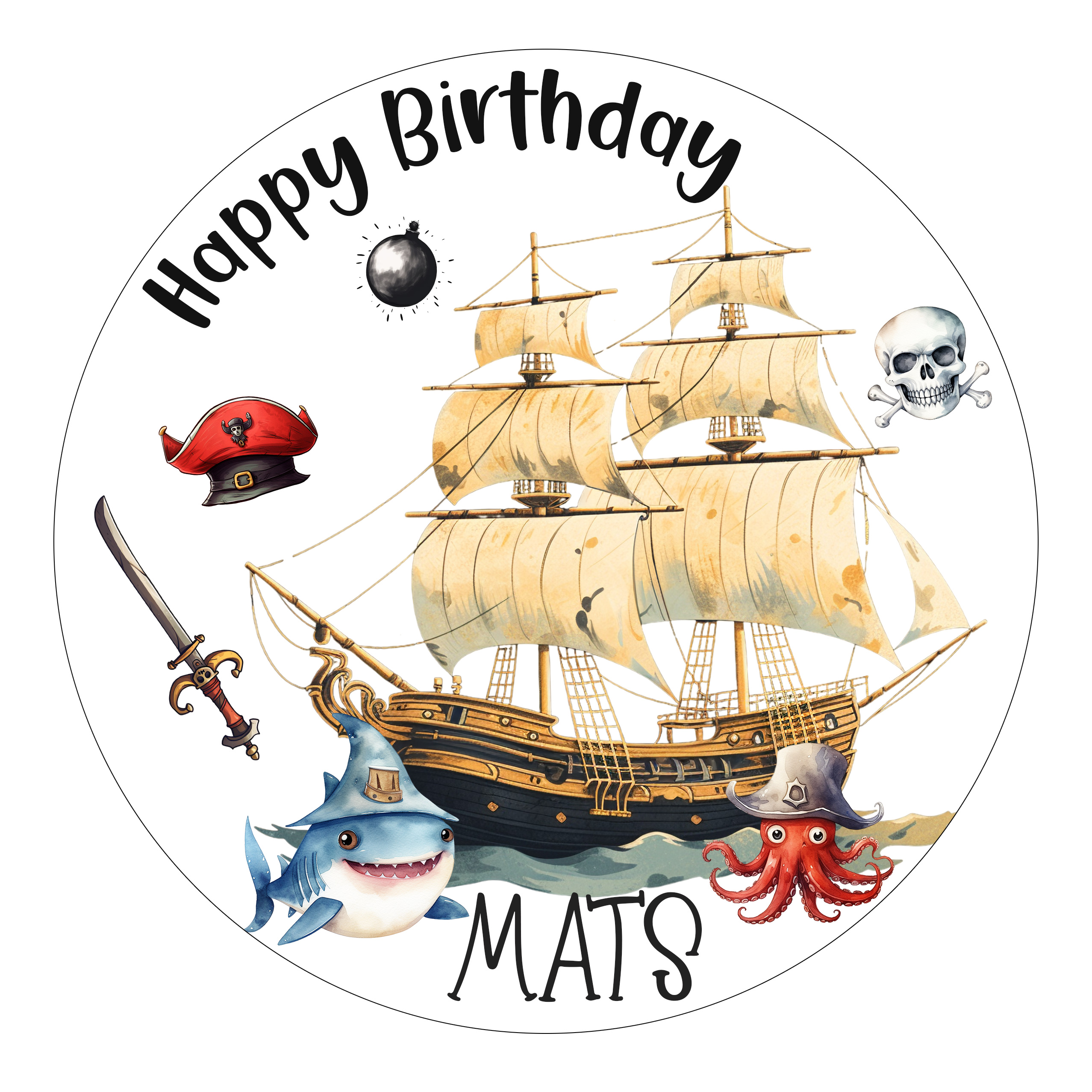 Der Aufleger PIRATENSCHIFF ist eine entzückende und personalisierte Tortendekoration für Geburtstagskinder, der PIRAT - und Motopartys. Diese einzigartige Tortendekoration verleiht jeder Feier einen Hauch von Begeisterung und Individualität.