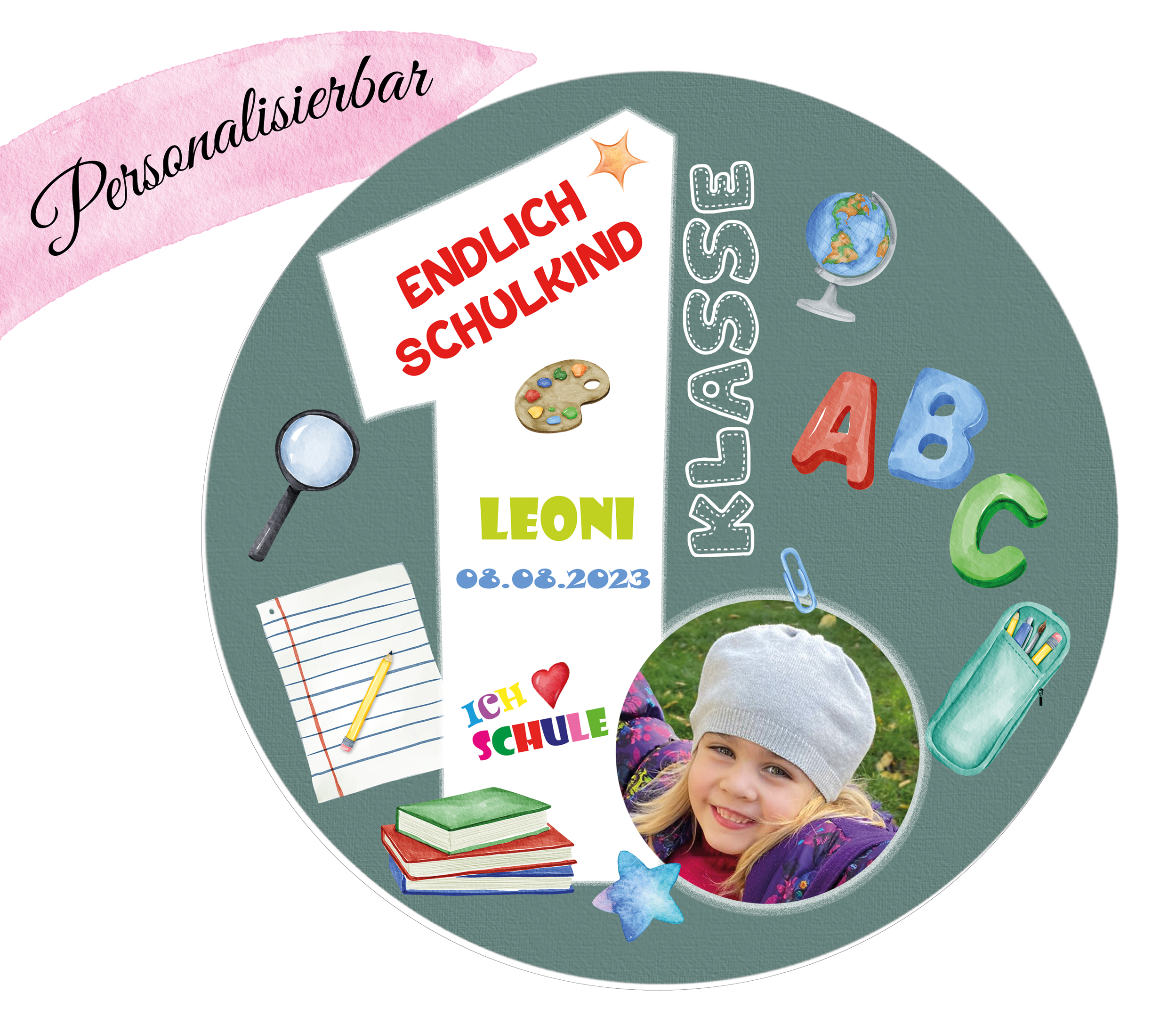 Gestalten Sie den ersten Schultag Ihres Kindes mit unserem schönen runden Tortenaufleger ganz persönlich. Dieser personalisierte Tortenaufleger mit Schulmotiven ist das perfekte Geschenk für Ihre Lieben. Sie können ein Foto und einen Text Ihrer Wahl als Highlight hinzufügen.