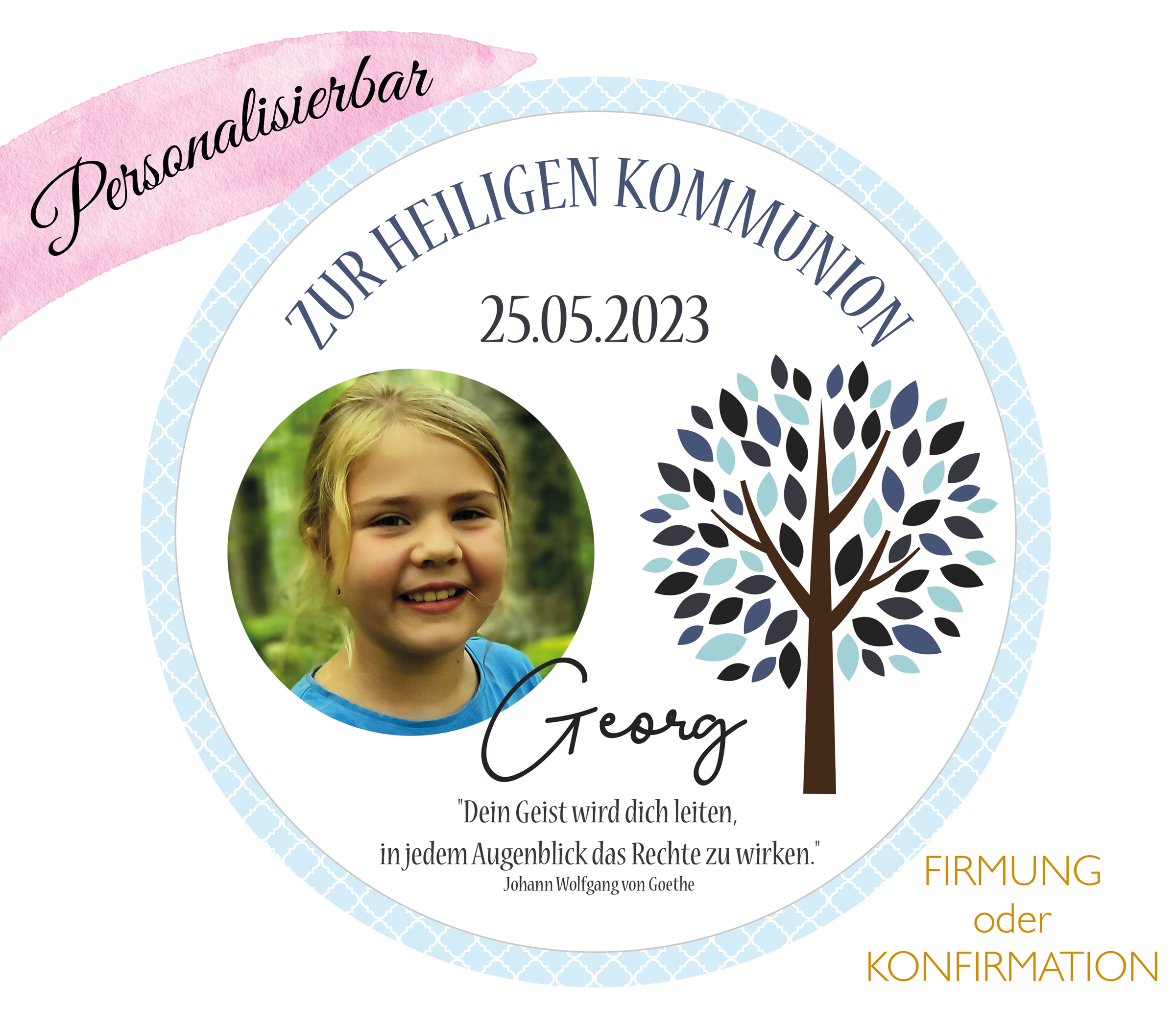 Tortenaufleger Tortenbild KOMMUNION KONFIRMATION Baum Junge personalisiert mit Foto